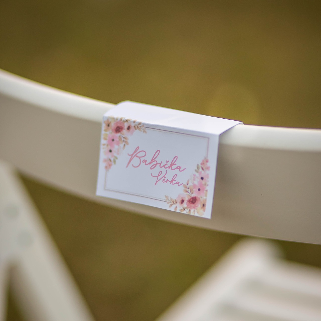 Nalepovací jmenovka – ideální pro venkovní obřady, pomáhá jednoduše a elegantně označit hosty.