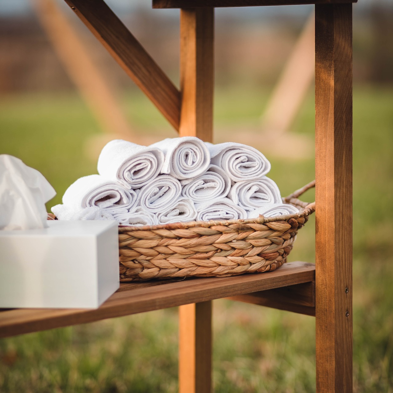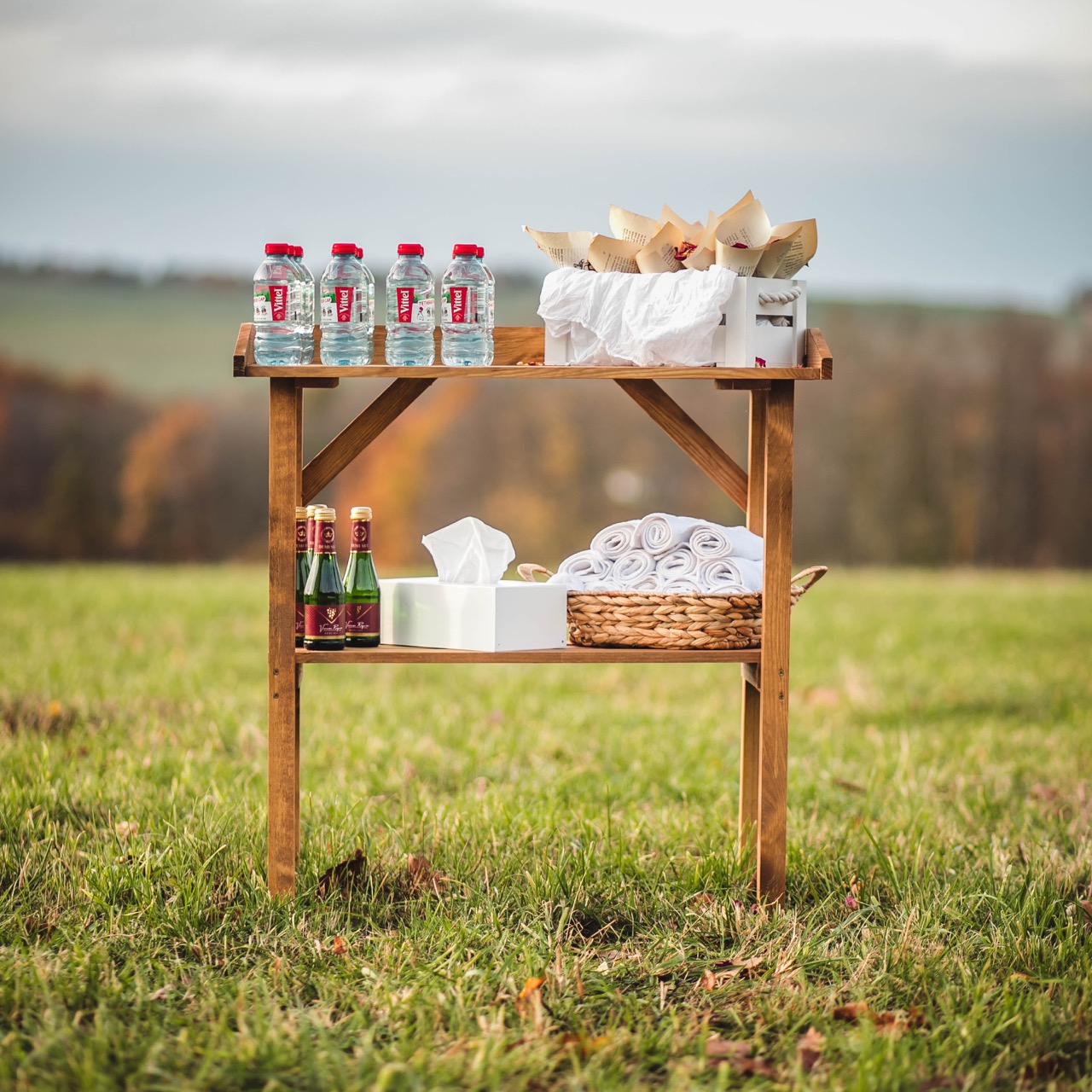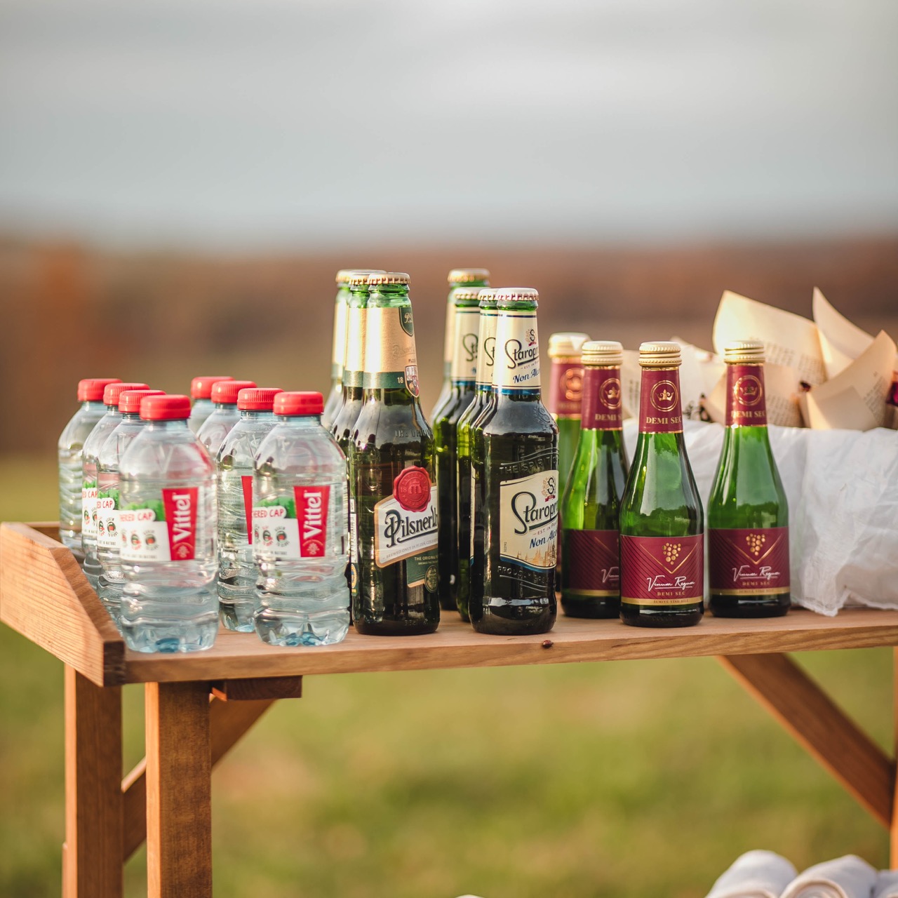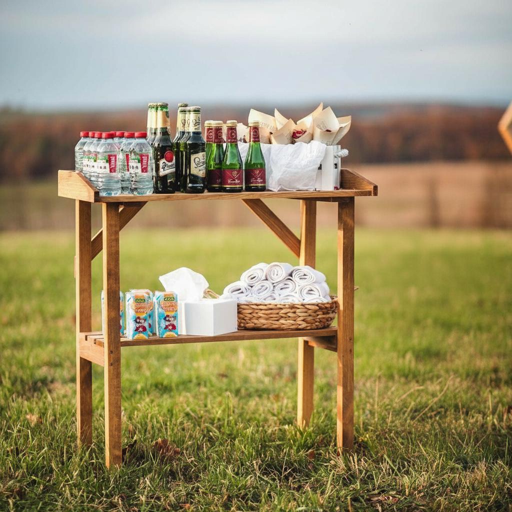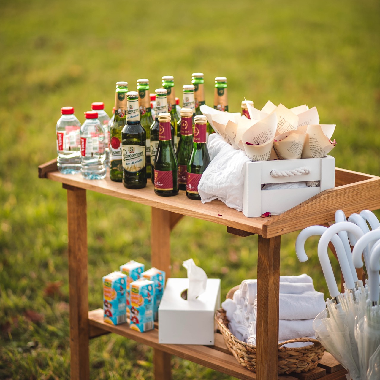 Udělejte svůj obřad pohodlný a stylový pro všechny hosty s naším obřadním barem. Základní balíček nabízí vše potřebné pro drobné osvěžení a romantické detaily.